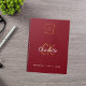 Um fundo vermelho. Personalize e adicione o logotipo da sua empresa, iniciais do monograma, nome e um título. Letras douradas e brancas.
