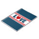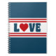 Design de amor com forma cardíaca em estilo náutico sobre fundo listrado a azul, vermelho e branco