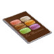 Notebook em um padrão elegante de macarões franceses em múltiplas cores e sabores pastéis - mestiço de arte digital da fotografia, aprimorada digitalmente e colorida