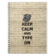 Moderno toma o popular slogan "mantenha a calma" em um pano de fundo de jornal antigo