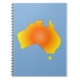 Uma versão ensolarada para o mapa australiano. Imagem em amarelo e laranja. Fundo azul em imagens selecionadas.