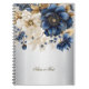 Marinho Azul Ouro Branco Flores Prateado notebook. Fácil de ser personalizado. O estilo, o tamanho e as cores da fonte podem ser alterados. Itens correspondentes disponíveis.
