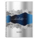 Caderno Espiral Marinho de prata azul-agate marble name script ele