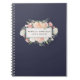 Acompanhe seus compromissos, dados do cliente e muito mais com nosso notebook floral chic. Design apresenta um rico fundo azul marinho à meia-noite com seu nome e/ou nome comercial em um crachá floral de cor d'água com aglomerados de flores rosadas, cor-de-rosa-pincel, rosa-creme e pedras. Perfeito para salões, estilistas, maquiadores ou qualquer negócio.