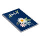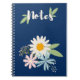 Este encantador cobrir de notebook apresenta um elegante fundo azul marinho adornado com um arranjo floral vibrante, incluindo margaridas, flores cor-de-rosa pastel e azuis, e um verde delicado. A escritura moderna "Notes" destaca-se lindamente, fazer-a perfeita para jornalismo, trabalho escolar ou ideias criativas. Este design traz uma estética nova e calmante para a sua experiência diária de escrevendo.