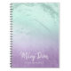 Este design de notebook bonito apresenta textura verde-brilhante da hortelã verde-gradiente, textura púrpura falsa e letra elegante de caligrafia. Personalize o produto com seu nome e cargo.