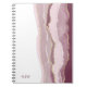 Caderno de mármore rosa. Mantenha seus pensamentos, sonhos e ideias lindamente organizados com este caderno exclusivo de mármore rosa. Projetado com tons brilhantes de rosa poeirento e rosa blush, ele reflete a tranquilidade contemplativa das formações minerais de geodos. A capa é adornada com um design simples e minimalista, mas elegante, de aquarela abstrata que certamente irá chamar a atenção. Seus tons dourados e rosa adicionam um toque de luxo não visto ao olho comum. Cada caderno pode ser facilmente personalizado com seu monograma.