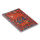 Um gato e um gatinho da marmalada parados sobre um tapete vermelho, azul e amarelo com temática de peixes. Notebook com um design personalizável para você personalizar com seu próprio texto, imagens e ideias. Imagem criada a partir de um desenho a lápis de cor original.