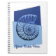 Notebook personalizado num impressão moderno, minimalista e boho do século médio de uma espinha em espiral num gradiente azul-oceano contra formas geométricas de azul escuro e claro