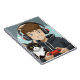 Pequeno jornal com o videogame Mega Jrex com seu gato preto e branco, Figaro.