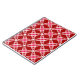 Padrão geométrico "atômico" moderno do século médio dos anéis elípticos concêntricos - branco e tons de rosa num fundo vermelho chinês profundo