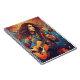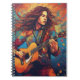 Esta ilustração vibrante e dinâmica representa uma pessoa tocando um violão acústico. A imagem é rica em cores, com padrões giratórios e abstrato que criam um sentido de movimento e energia. O cabelo comprido flui desesperadamente, aumentando a dinâmica do trabalho de arte. O fundo é uma mistura de tons quentes e legal, com salpicos de cor que aumentam a atmosfera viva geral. A representação detalhada da guitarra e o uso expressivo das cores tornam essa imagem cativante e visualmente engajadora.