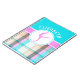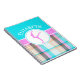 Este caderno summery da GINÁSTICA tem um fundo legal do tartan. A xadrez consiste na turquesa, no rosa, no tan, no branco, e nas listras do preto. Há uma silhueta do gymnast dentro de um círculo na parte dianteira. Adicione seu nome antes que você peça!