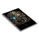Ornamento decorativo em metal de flores e folhas, no estilo da ilustração sonhadora, bronze escuro e azure.