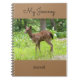 Um caderno espiral como diário com uma foto de um jovem cervo