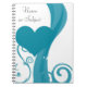 Notebook Teal Heart and Swirl Design com seu nome ou assunto adicionado