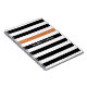 Personalize este moderno notebook horizontal preto e branco com padrão de listras, com uma faixa brilhante, cor de laranja, acrescentando o nome de qualquer menina feminina. Este padrão gráfico de tendência é perfeito para a moda quic. Imagem impressa plana, NÃO com brilho real.
