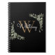Caderno de notas de monograma com nome de greenery em aquarela elegante com inicial de monograma dourado e seu nome em uma fonte branca elegante em um fundo preto. Projetado por Thisisnotme©