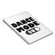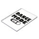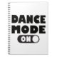 Este notebook divertido e dançante apresenta a citação "Dance Mode One" (Modo de dança um) com um botão de ação preto e branco giro, realçado sobre um fundo branco nítido.