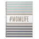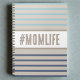 Caderno em azul turquesa, bege e branco. Arte de citação personalizada com design de hashtag "#momlife" em cores de praia. O presente perfeito para sua mãe no aniversário dela ou no dia das mães.