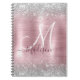 Caderno Espiral Monograma cinzento de cintilação prateada com rosa