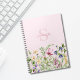 caderno floral rosa com monograma e nome. Bonito, branco, design de flor silvestre de cor aquática de verão. Fácil de mudar o monograma e o nome.