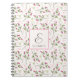 Caderno Espiral Monograma de Flores Selvagens, Rosa e Verde Longas