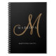 Caderno Espiral Monograma de letra cursiva preta e dourada elegant