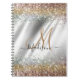 Volte para a escola divertida com este Bloco de Notas Personalizado e Bonito. Ele foi projetado com elegante brilho iridescente e giro em um monocromo e um metal dourado embebido em prata. Para torná-lo extra especial, ele também é monograma e personalizado com nome, iniciais ou qualquer texto que você quiser, clique no link "personalizar mais" e use a ferramenta design para modificar o design, se você quiser. Bela, moderna e legal notebook para escola, faculdade ou até mesmo suas revistas. Mostre o seu estilo pessoal, fique em voga, moda e sinta-se na moda em volta dos seus amigos com um design único no seu notebook ou personalize-o sobre outro produto de sua escolha. Seja para dia de os namorados, Natal ou como presente em geral, faz uma ideia de presente excelente para qualquer garota que ama coisas modernas e brilhantes. NOTA: Estes são gráficos impressos - sem brilho real, joias ou peças levantadas.