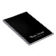 Notebook preto moderno para sua empresa pessoal ou profissional, com seu nome de monograma ou marca mostrada em um script de assinatura branco na moda. Adicione texto adicional abaixo em letras brancas simples.