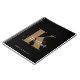 Notebook preto moderno, com um monograma inicial em uma fonte dourada grande e em negrito, e seu nome em um script de assinatura de caligrafia branca-na moda.