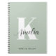 Caderno Espiral Monograma de Script Moderno Verde