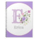 Design apresenta o Monograma & Nome do destinatário com Flores em ambos os lados, no estilo pastel de cor de água. Inicial é a letra E.