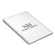 Notebook empresarial moderno com um design preto e branco simples e mínimo, com seu monograma em uma fonte em negrito junto com seu nome.
