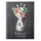 Este caderno de receitas preto rústico contém rosas de vintage, eucalipto e um jarro de monograma personalizado, adequado para uma cozinha de fazenda rural e receitas familiares!