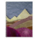 Uma paisagem abstrato com cores e texturas únicas mostrando uma cena de montanha em tons de roxo, bronzeado, bege e e marrom.