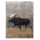 Notebook Bull Moose. Um grande alce de alce que atravessa a escova de esfregão numa área de colinas de areia no sudeste de Alberta, Canadá. Moose parece fora de lugar neste terreno seco e arenoso que tem muito pouca água para sustentar a alça de vegetação aquática normalmente alimentada.