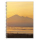 Uma vista deslumbrante e pacífica do nevoeiro cobriu o vale e a montanha maciça ao fundo - todos pintaram uma laranja pálida pelo brilho do sol da manhã cedo.