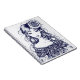 Este caderno branco apresenta um desenho bonito de uma jovem com um rosa no cabelo.