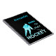 Um belo caderno de hóquei no gelo, presente de excelente para jogador de hóquei - para criar um diário privado, fazer anotações ou desenhar. Cor: Azul congelado sobre fundo. Design: "Nascer para jogar hóquei" + Silhuette do jogador de hóquei + personalize com o primeiro nome do jogador. Projetado por iceskatingpassion.com. Outras cores no compro