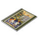 Ilustração antiga da época vitoriana com imagem de Natal, apresentando irmãos felizes sentados num sofá. Um irmão e uma irmã num sofá com uma árvore de Natal decorada e uma janela atrás deles. A menina está lendo um livro e o menino está comendo um doce de Natal. O texto diz "Um Feliz Natal".