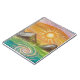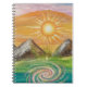 A serene and spiritual landscape painting featuring majestic mountains under a glowing sun, in the heart of the lake , a mystical glowing spiral vortex represent energy and flow . this artwork combines the beauty of nature with a touch of cosmic wonder