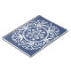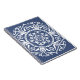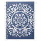 Esta mandala branca senta-se sobre um fundo marinho. As cores são inteligentes e calmas. Parte da Coleção Rosenn Mandala.