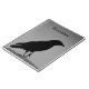 Corvidae preto e branco estrelado em um caderno para suas notas e rabiscos.