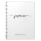Caderno personalizado minimalista feminino simples e limpo com monograma de nome branco. Este design apresenta seu primeiro nome em uma linda tipografia de letra manuscrita com cauda ornamentada, com um modelo de nome completo em fundo branco. São fáceis de personalizar e podem ser usados como Livro de Receitas, Diário Pessoal, Caderno de Desenho, Revista e muito mais. Também é um presente feminino elegante para aniversário, Dia das Mães, chá de noiva, casamento, festa de 16 anos, e chá de bebê, negócios, formatura, volta às aulas, trabalho profissional e para quem gosta de coisas simples e limpas.