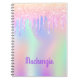 Caderno Espiral Nome da menina unicórnio iridescente, cor-de-rosa,