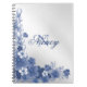 Caderno Espiral Nome do Monograma Cinza Floral Blue Silver Elegant