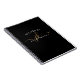 Notebook moderno personalizado preto, dourado e branco com receita (6.5x8.5) com uma elegante sigla de monograma manuscrita e nome em cores negras, douradas e brancas editáveis para um aspecto na moda ou profissional. ASSISTÊNCIA: Para obter ajuda com a modificação ou personalização do design, alteração de cor, redimensionamento, transferência do design para outro produto ou, se você quiser coordenar itens, entre em contato com o designer ANTES DE PEDIR através da guia MENSAGEM de bate-papo Zazzle abaixo ou envie um email para makeitaboutyoustore@gmail.com.
