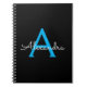 Caderno Espiral Nome do Monograma Girly de Script Preto Azul