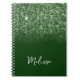 Crie seu próprio notebook de vazio personalizado feminino. Sobreposição de Emerald Glitter ombre sobre um fundo de cor sólida. Personalize o fundo verde escuro para sua cor favorita. Mude o estilo moderno de letra de escrita manual para o seu nome. O brilho é a arte digital que impressão como uma foto em seu presente.